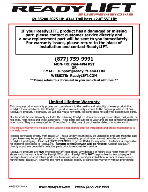 - 2" front lift combines with factory 2" lift.
